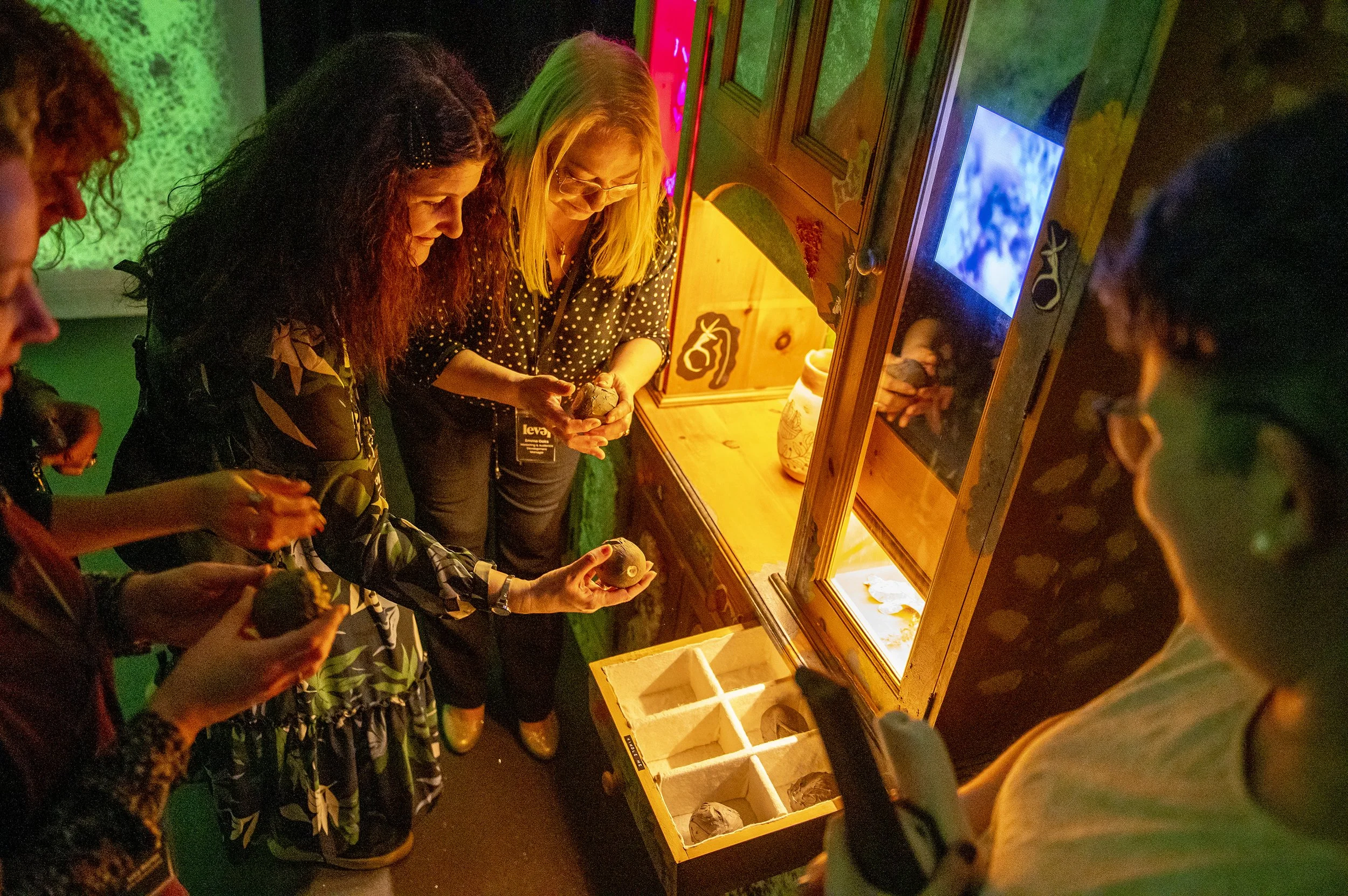 The Brew Projects team returned to LEVEL in the summer of 2023 following their Residency Lab project, The Fun Machine in Summer, 2022. The collective including Elizabeth Lambert and Laura Mabbutt built on their previous project, continuing to create accessible experiences for audiences, including those with disabilities and who experience social isolation. This 6 month long exhibition celebrates the area’s local biodiversity and local history and has been inspired by the artists’ trips to Derbyshire including their visits to the Nine Ladies Stone Circle and Bakewell House Museum.