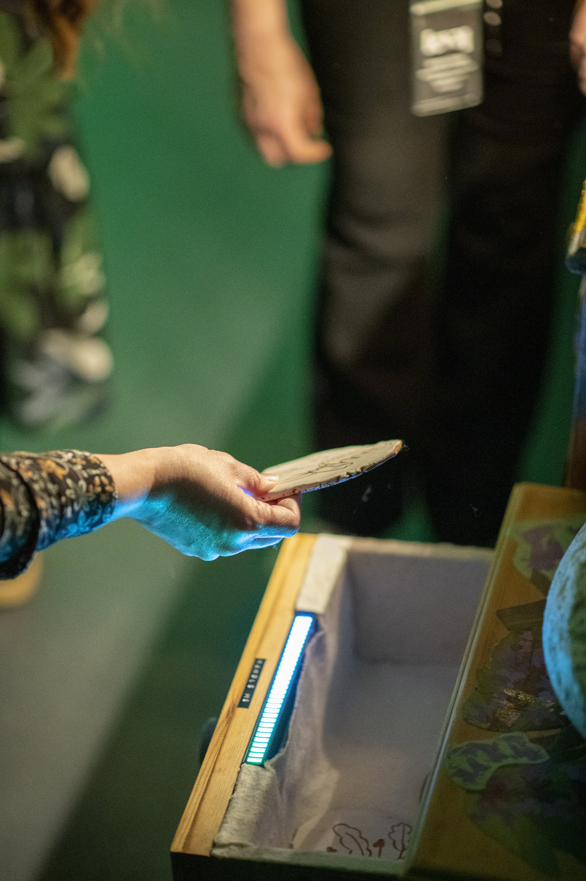 The exhibition was full of sensory experiences including artworks that visitors could touch as well as see and hear. The experience blends Brew’s background in craft and design with their experimental practice in working with digital technologies, providing elements of digital artwork that visitors can interact with.
